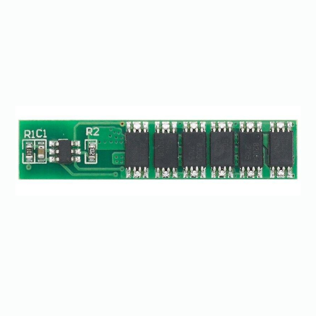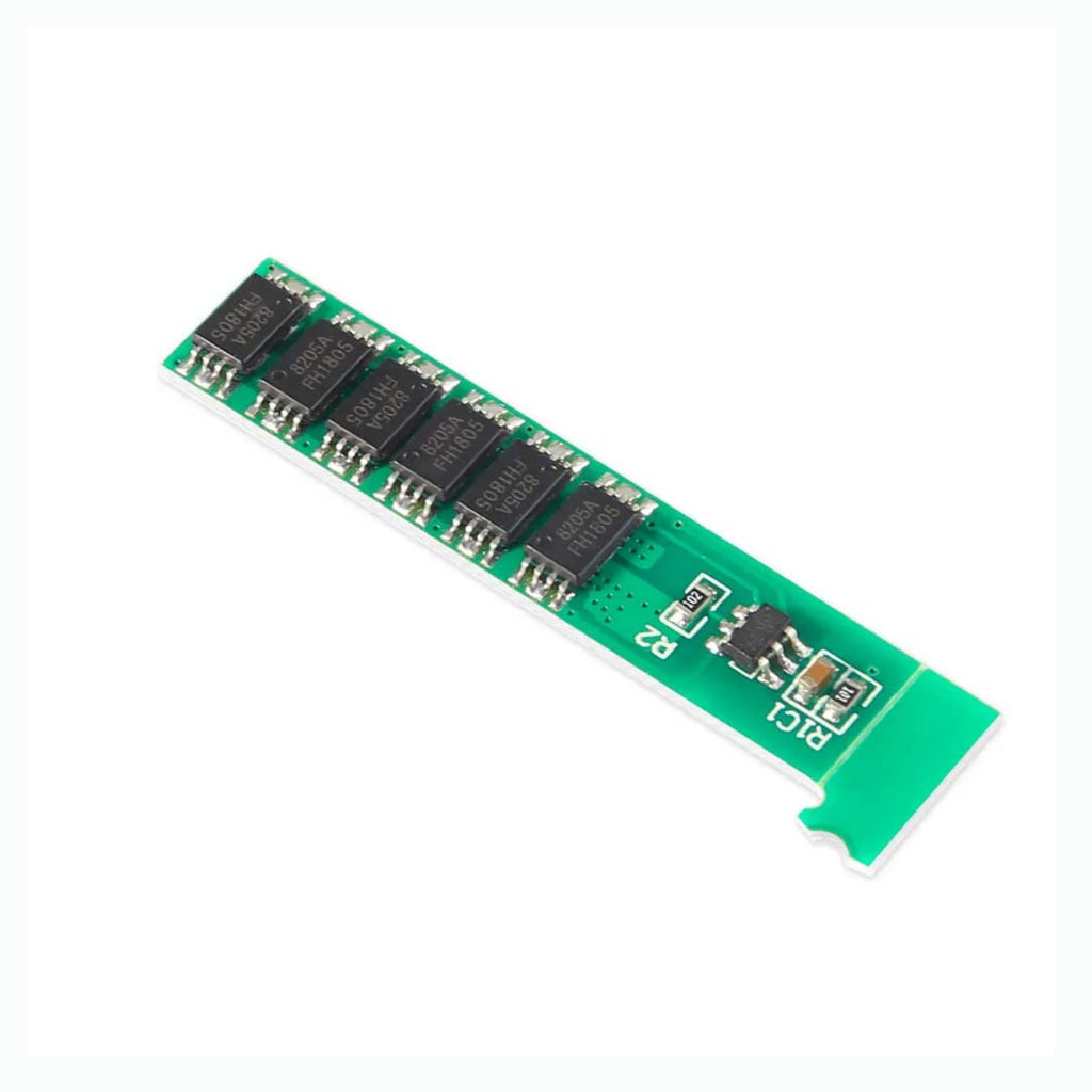 The 1S 9A 6-MOS BMS (Battery Management System) is a compact protection circuit designed for single lithium-ion or lithium-polymer cells. It continuously monitors battery voltage and current and disconnects the load or charger during unsafe conditions. The use of six parallel MOSFETs reduces internal resistance, improves efficiency, and enhances current-handling capability in compact battery-powered systems.