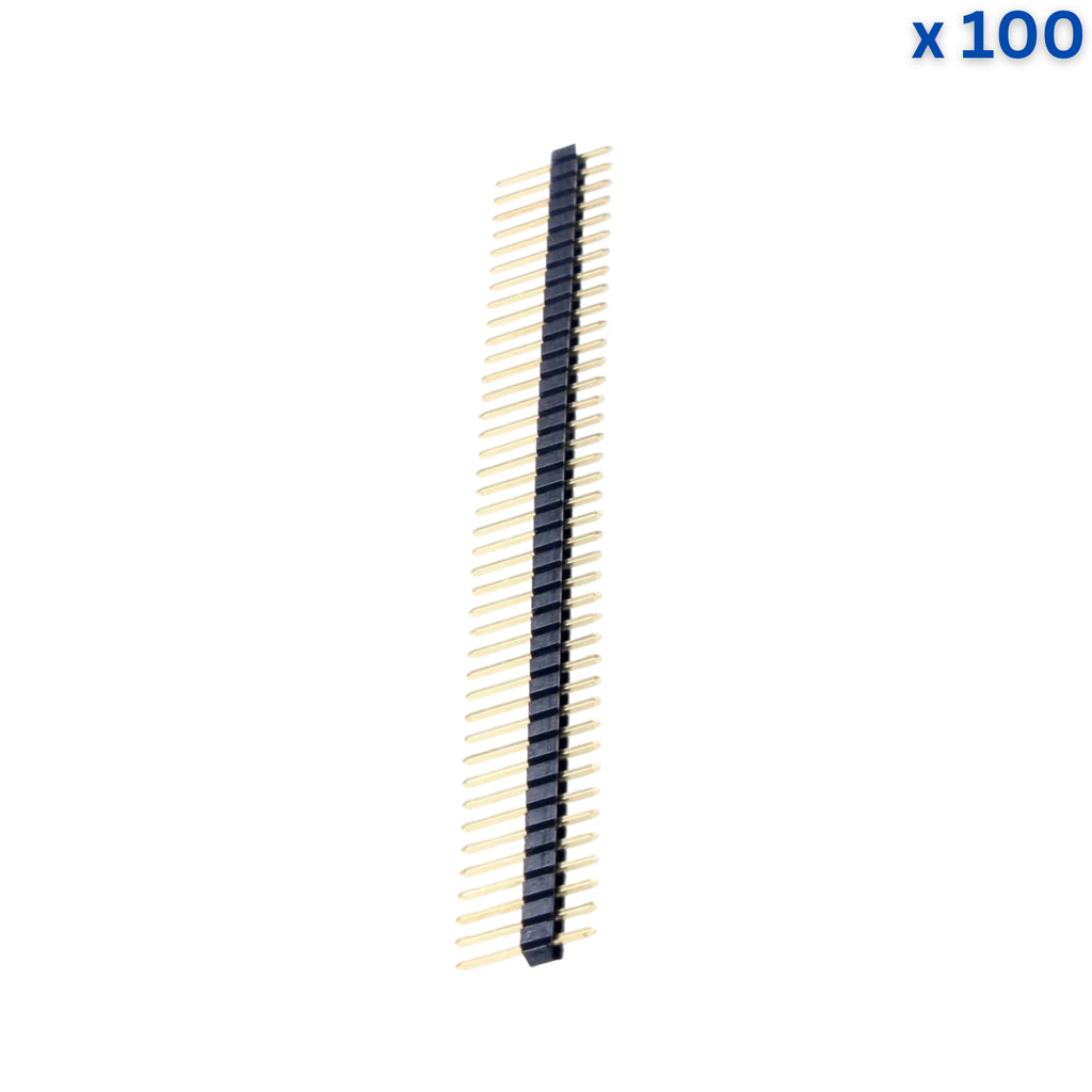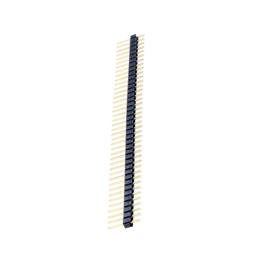 The 40×1 Single In Line Male Pin Header is a standard through-hole connector featuring a single row of 40 straight male pins with a 2.54 mm pitch. It is widely used for board-to-board connections, module interfacing, and prototyping. The header can be easily cut to the required length, making it highly flexible for custom PCB designs and development projects.