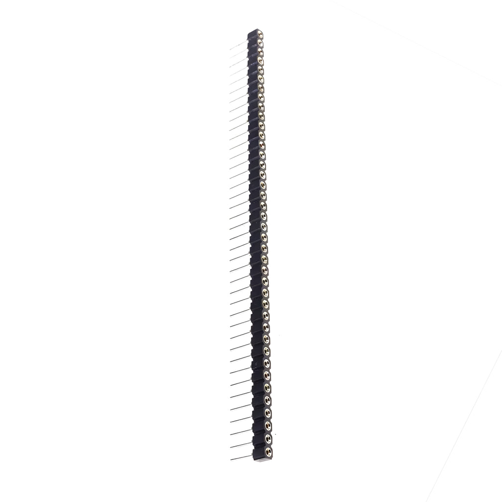 The 40×1 Single In Line Female Pin Header is a single-row through-hole socket header designed to provide reliable and reusable connections between PCBs and male pin headers. With a standard 2.54 mm pitch, it is widely compatible with Arduino, Raspberry Pi, ESP, and other development boards. The female socket design allows easy insertion and removal of mating pins, making it ideal for prototyping, testing, and modular circuit designs.