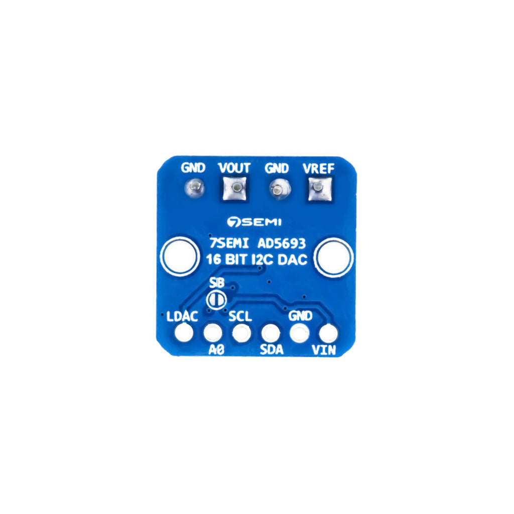 The 7Semi AD5693R 16-Bit I2C DAC Breakout is a precision digital-to-analog converter module based on the AD5693R nanoDAC+. It provides high-resolution 16-bit analog output with an onboard low-drift 2.5V reference. With its accurate output, low power consumption, and I2C interface, this module is ideal for instrumentation, calibration systems, automation, sensor interfacing, and any embedded project requiring precise voltage generation.