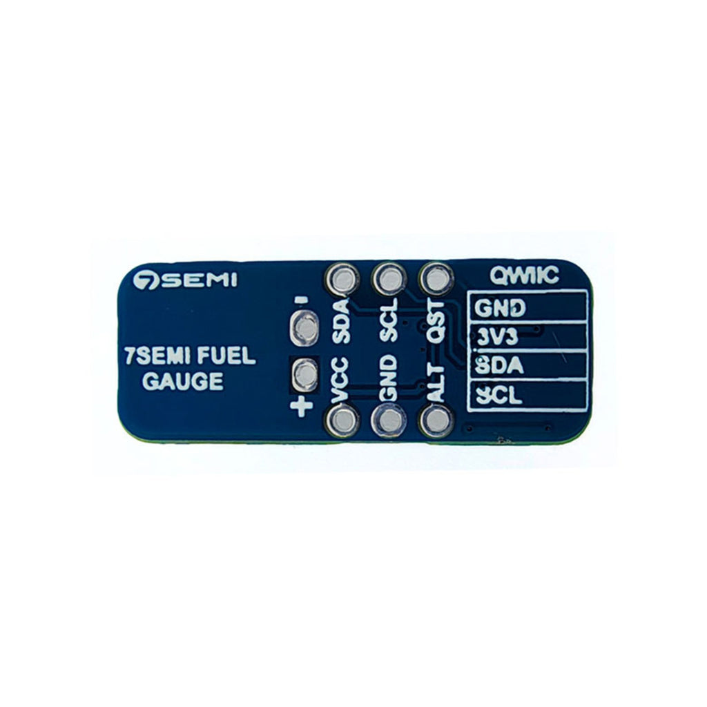 The 7Semi MAX17048 Li-Poly/Li-Ion Fuel Gauge Mini Breakout is a compact, high-precision battery monitoring module designed for single-cell lithium-ion or lithium-polymer batteries. It uses the Maxim Integrated MAX17048 IC, which features advanced ModelGauge technology to accurately measure battery voltage, state-of-charge (SOC), and remaining capacity without requiring calibration. The module communicates via the I²C interface and offers ultra-low power consumption, making it ideal for portable, battery-powered, and IoT applications where accurate battery status monitoring is essential.