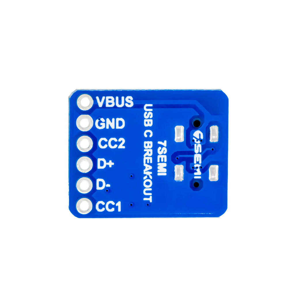 The 7Semi USB-C Female Breakout – Vertical is a compact and durable adapter board that provides easy access to the essential USB Type-C pins in a vertical mounting format. Designed for quick prototyping and testing, it breaks out the USB-C connector pins into 0.1-inch spaced solder pads, allowing easy integration with breadboards, perfboards, or custom PCBs. The vertical orientation makes it ideal for projects requiring an upright USB-C interface for power or data connectivity.