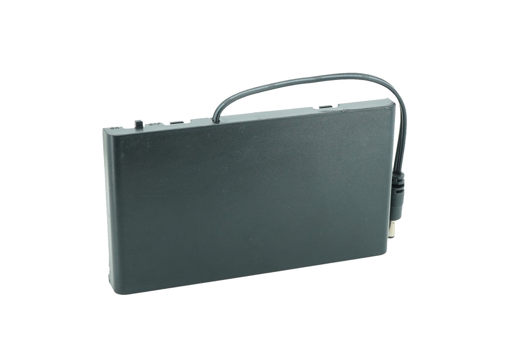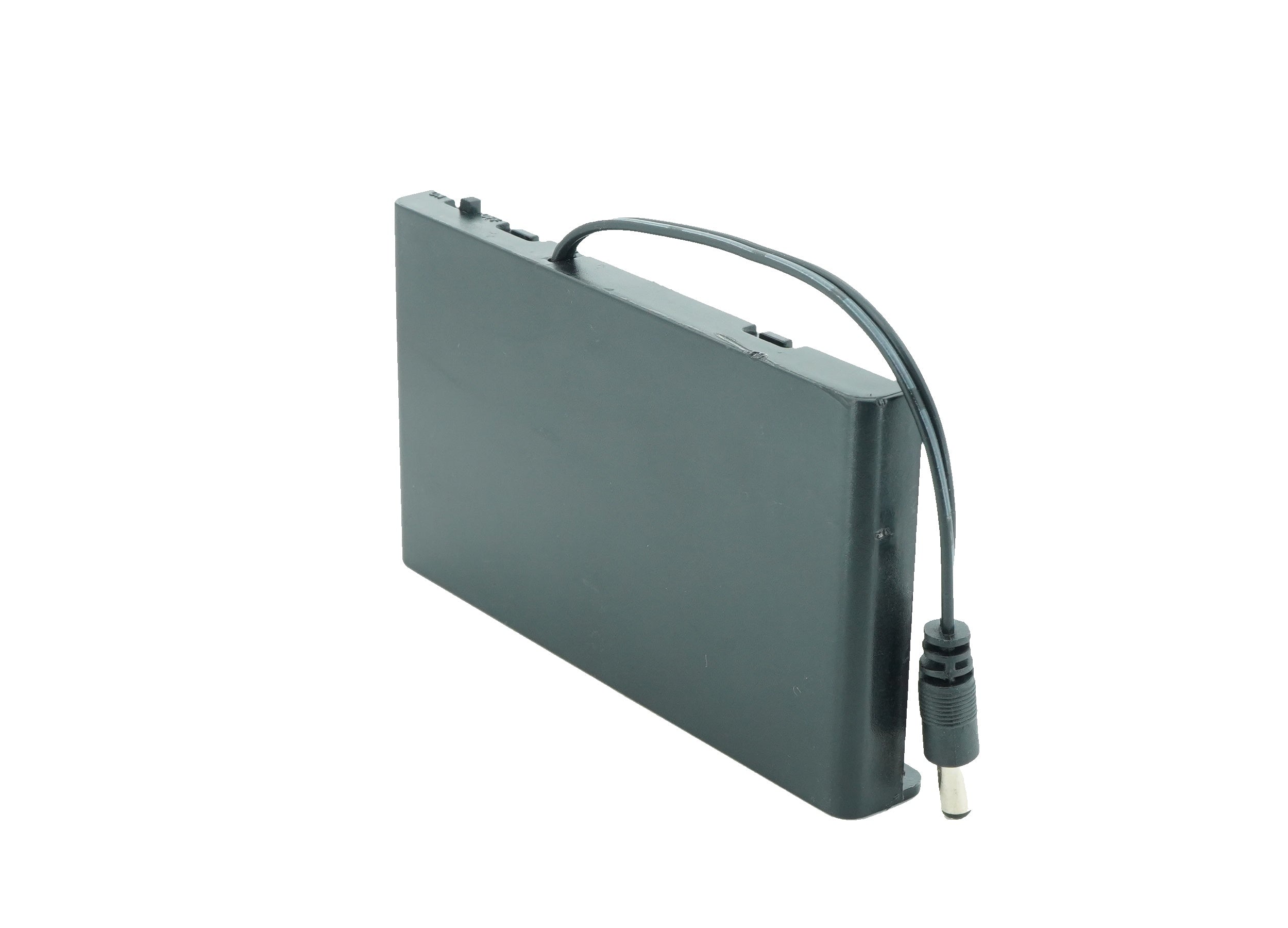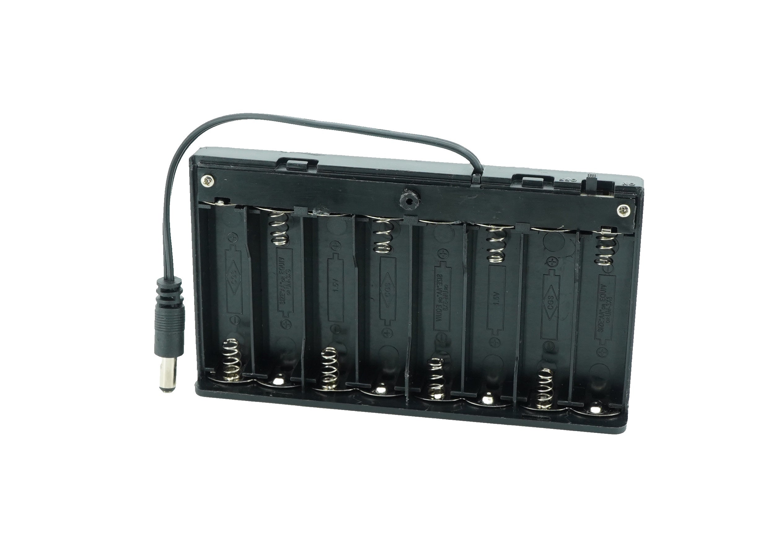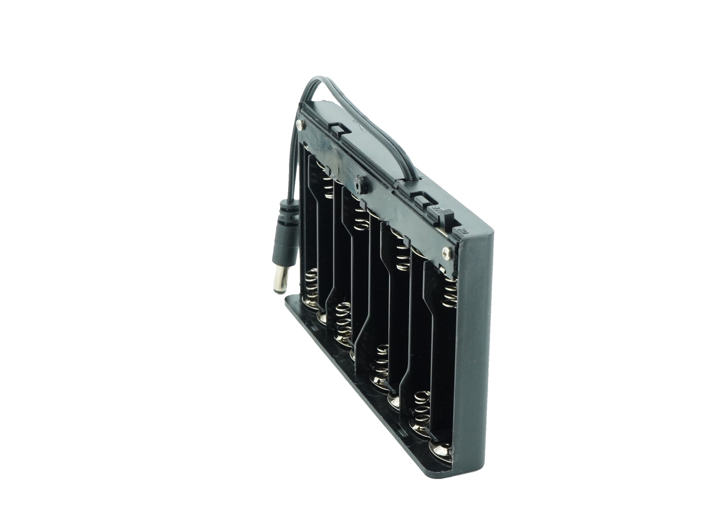 Battery holders are key components in many types of portable and anchored electrical items. A battery holder is an integral or removable compartment or cavity, designed to be inserted into - or attached onto - a suitable item of cell-powered equipment. The primary function of a battery holder is to keep cells fixed in place safely and securely while conveying power from the batteries to the device. This battery holder comes with cover, on/off switch for controls and DC male jack.